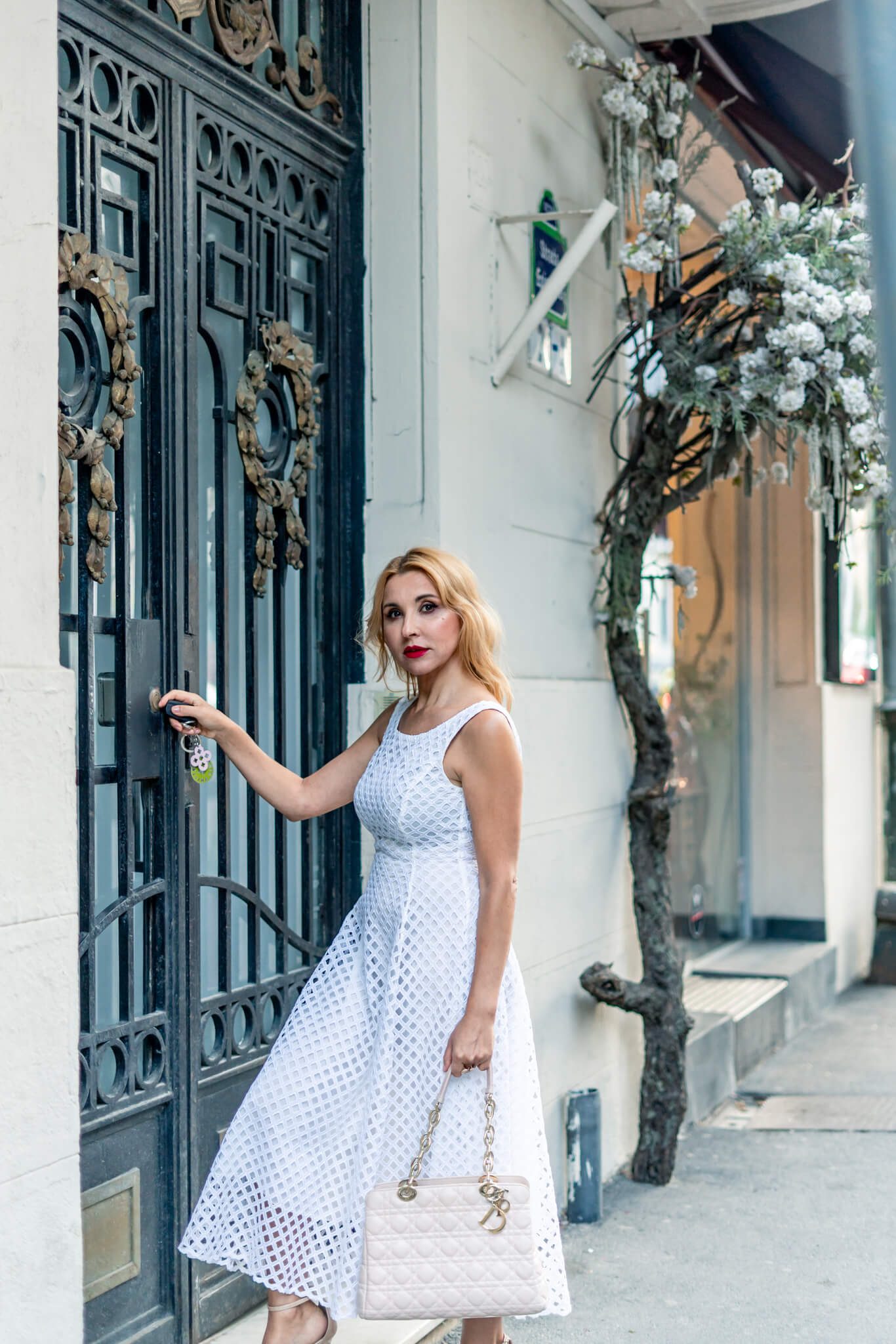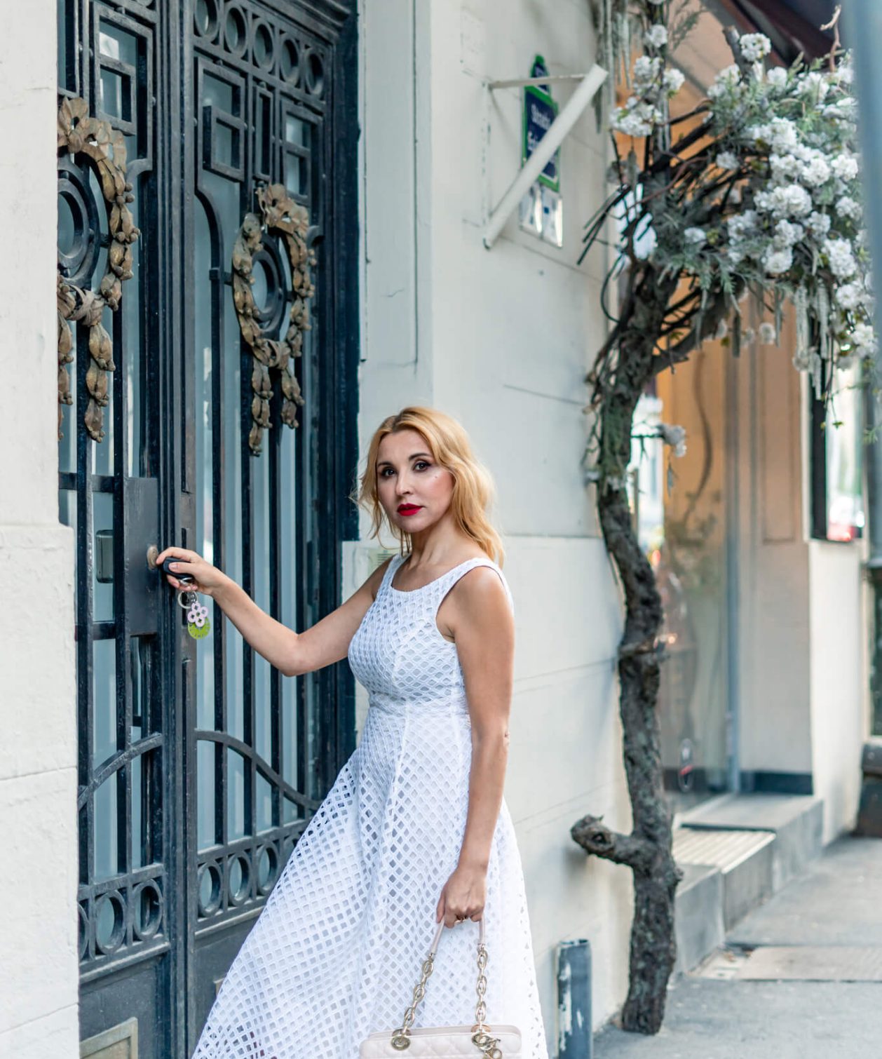 Rochie din bumbac brodat, dublura din batist de bumbac.